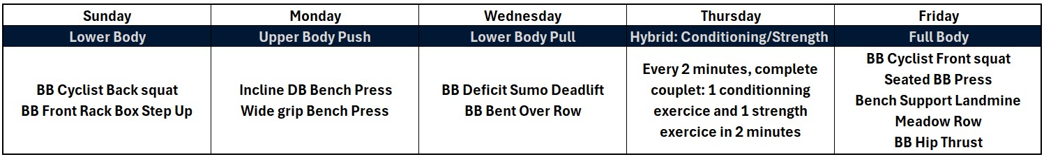 • Thursday = Conditioning + Strength